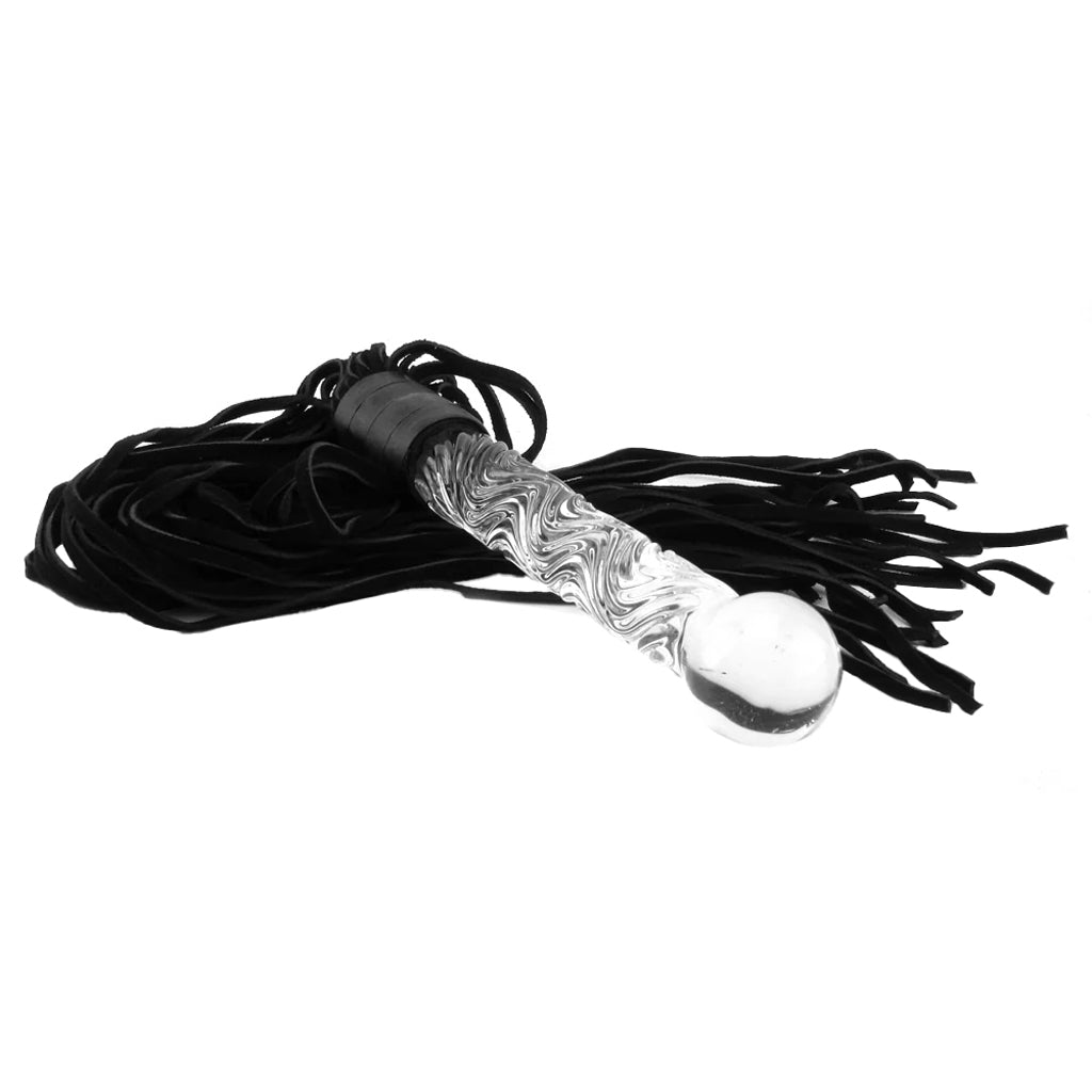 Passing perfect control into the hands of the holder, a smooth, weighty handle is absolutely dreamy, it's crystal clear with a deliciously swirly raised texture and large spherical handle. Not only does this glass piece serve as a base for the sexy leather whip, but doubles as a dildo for unforgettable vaginal or anal penetration.