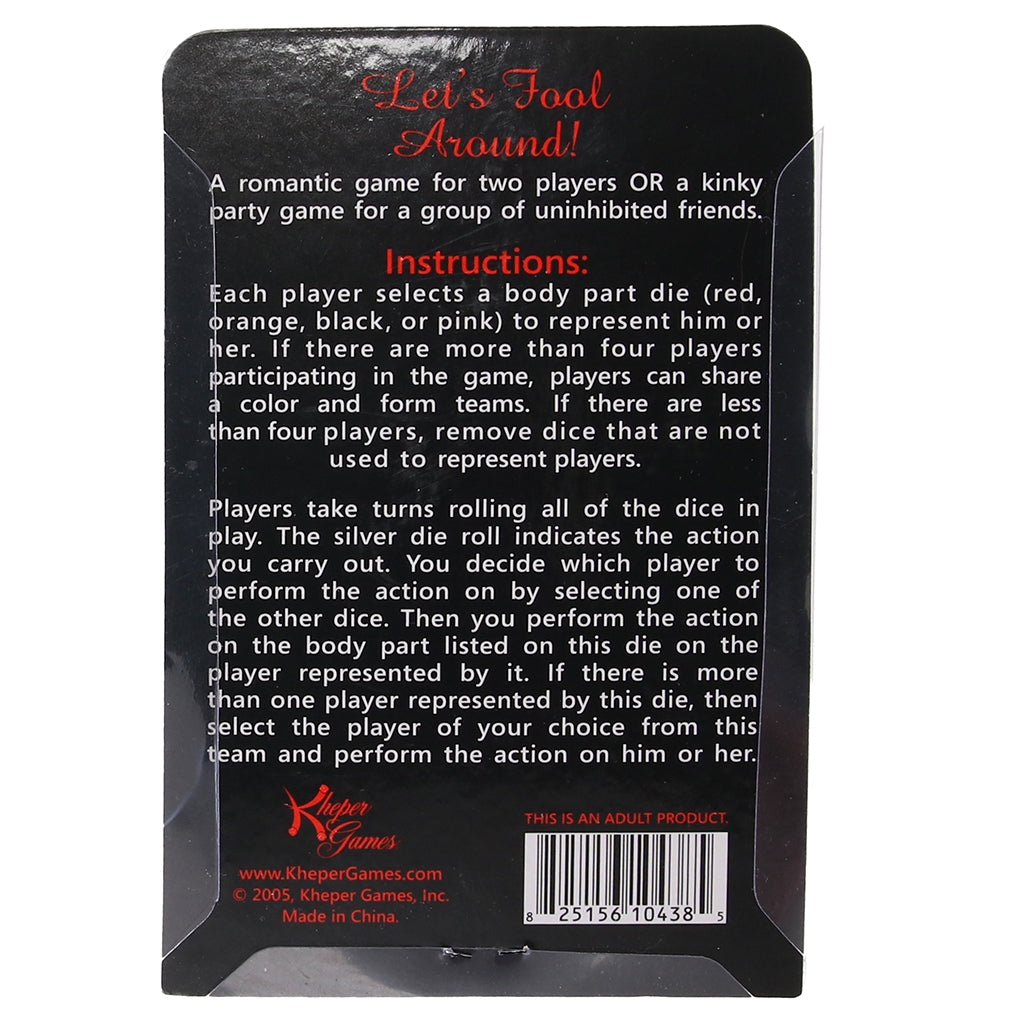 The silver die runs the show, calling out a teasing action like lick, tickle, or blow on. Everyone chooses a body-part die to represent themselves, then the roller picks which player gets involved. Roll the dice, choose the color, and let the combo decide the moment.