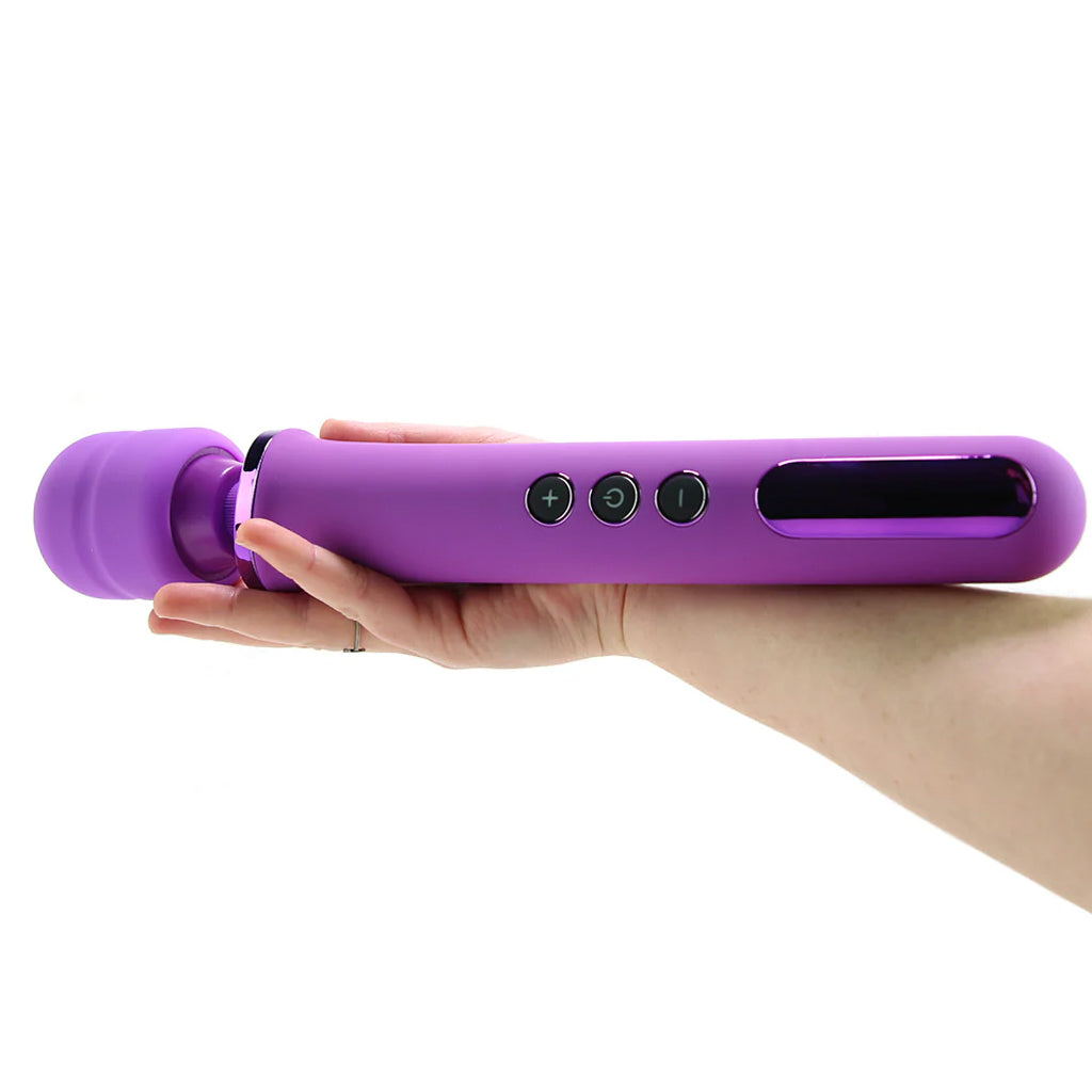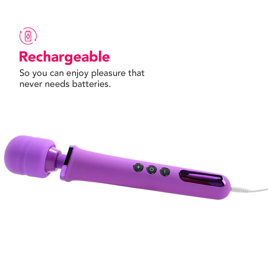 At the tip of your Power Wand, a big, extra bends at the neck to easily reach external sweet spots - clitoris, nipples, head of the penis and beyond are no match for the sexy-flexi shape. Ten rumbly vibe modes cue up at the touch of a dedicated power/function button, while + and - buttons above and low cycle up and down through five intensity options.