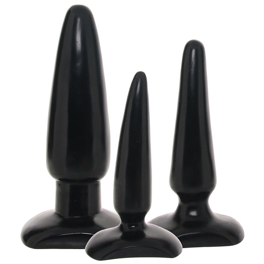 One of our most popular models is the Booty Rocket Vibrating Anal Probe in black, an absolutely gigantic butt plug for those with a little experience under their belt. When your done with entry-level plugs, try the Booty Rocket for a next-level challenge in anal stimulation. If you’d rather something slightly more tapered, our signature PinkCherry Rock Your Body Anal Plug is something you can really lean into. It’s the extra user-friendly butt plug that’s designed to be perfect for just about any level of anal play experience. Enjoy its shaft-long vibrations and perineum-tickling base. And if you’re ready for something in between, the Doc Johnson Classic Butt Plug (Medium) in black is 4.5” of smooth, tapered, and flexible PVC jelly rubber that moves with you.