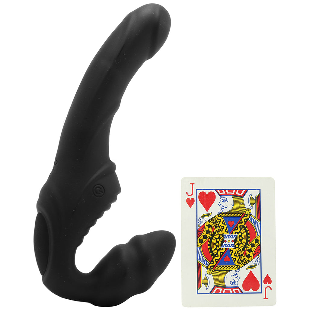 This strap-on system is totally unique, and technically wrongly named, because there are no straps at all. The Pro Rider's long, deeply pleasing shaft is held in place by the wearer's pelvic floor muscles. A big, g-spot targeting bulb fits securely very pleasurably in the vaginal canal, offering up a sturdy grip point. In front of the bulb, there's a thick patch of sexy texture to rock and grid against. Oh, and it vibrates!
