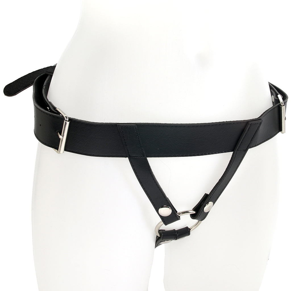Four snap-ended straps connect to a sturdy 2"/5cm metal O-ring, which fits the base of any compatibly sized and flared or flanged penetrator. Fits up to a 49.5"/125.75cm waist.