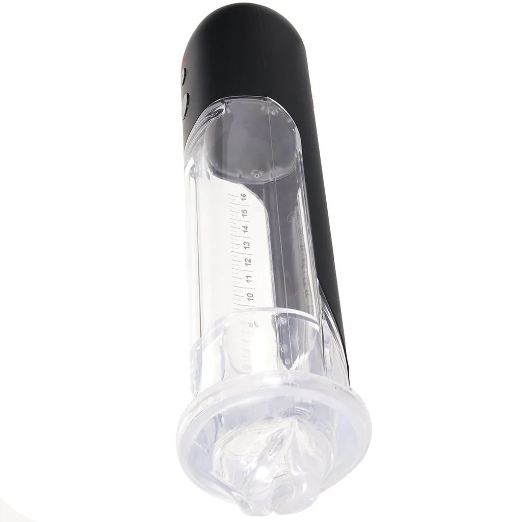 The Power Pump's clear, sturdy cylinder holds an (also clear) stroke sleeve with soft lips at the opening. For pumping purposes, let the suction do its work before releasing; for a blowjob effect, switch to intermittent.