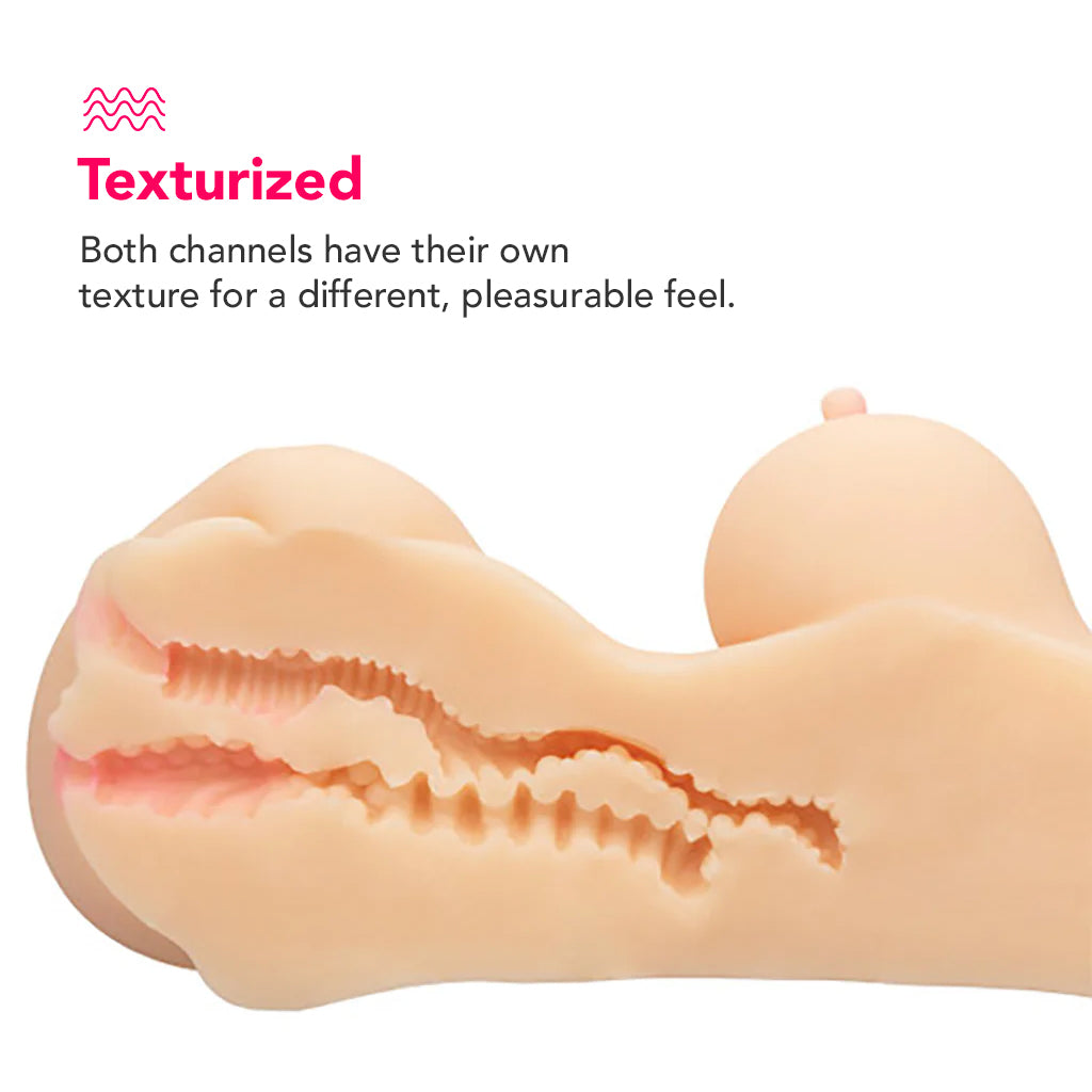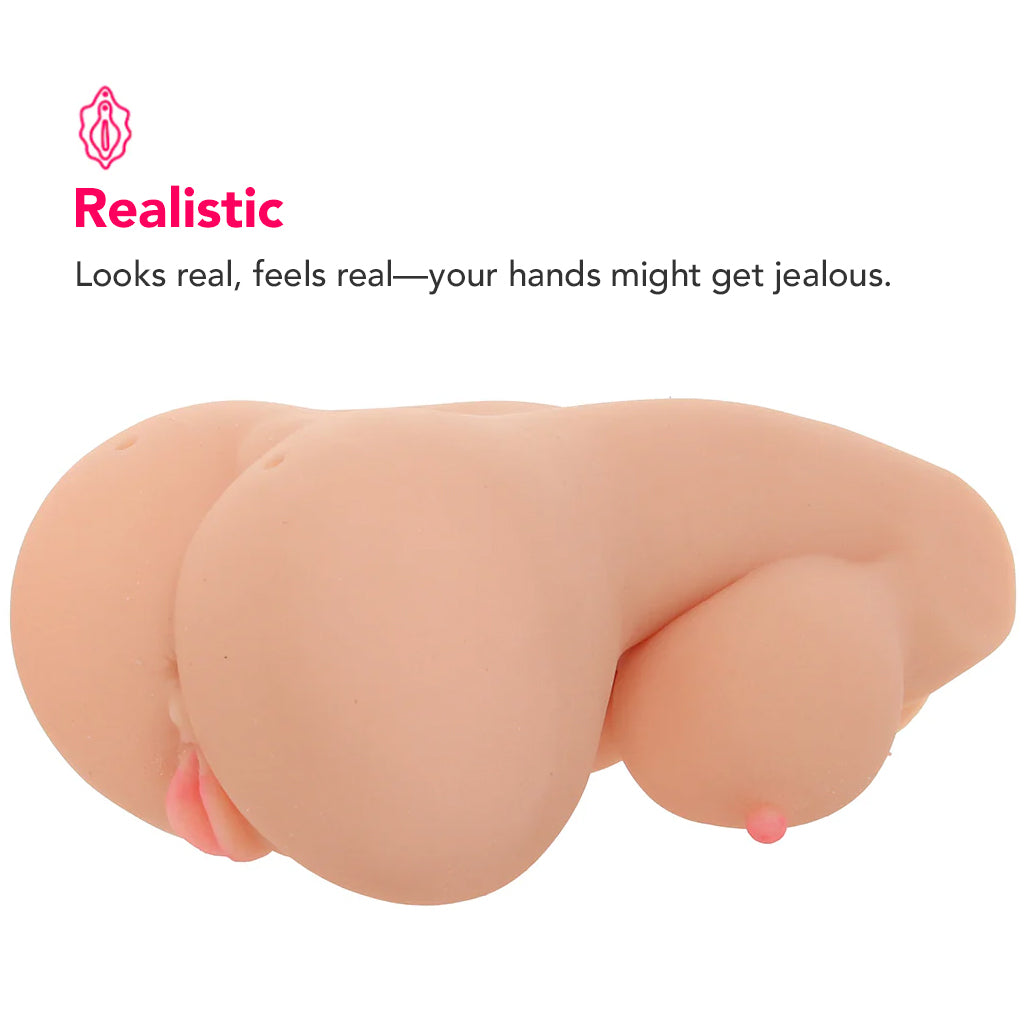 We’re talking stacked curves, giant bouncy boobs, a spank-me butt, and two tight, lifelike channels (pussy and ass) that feel scarily real. Plus, those plush breasts? Totally ready for a good titty-bang session.