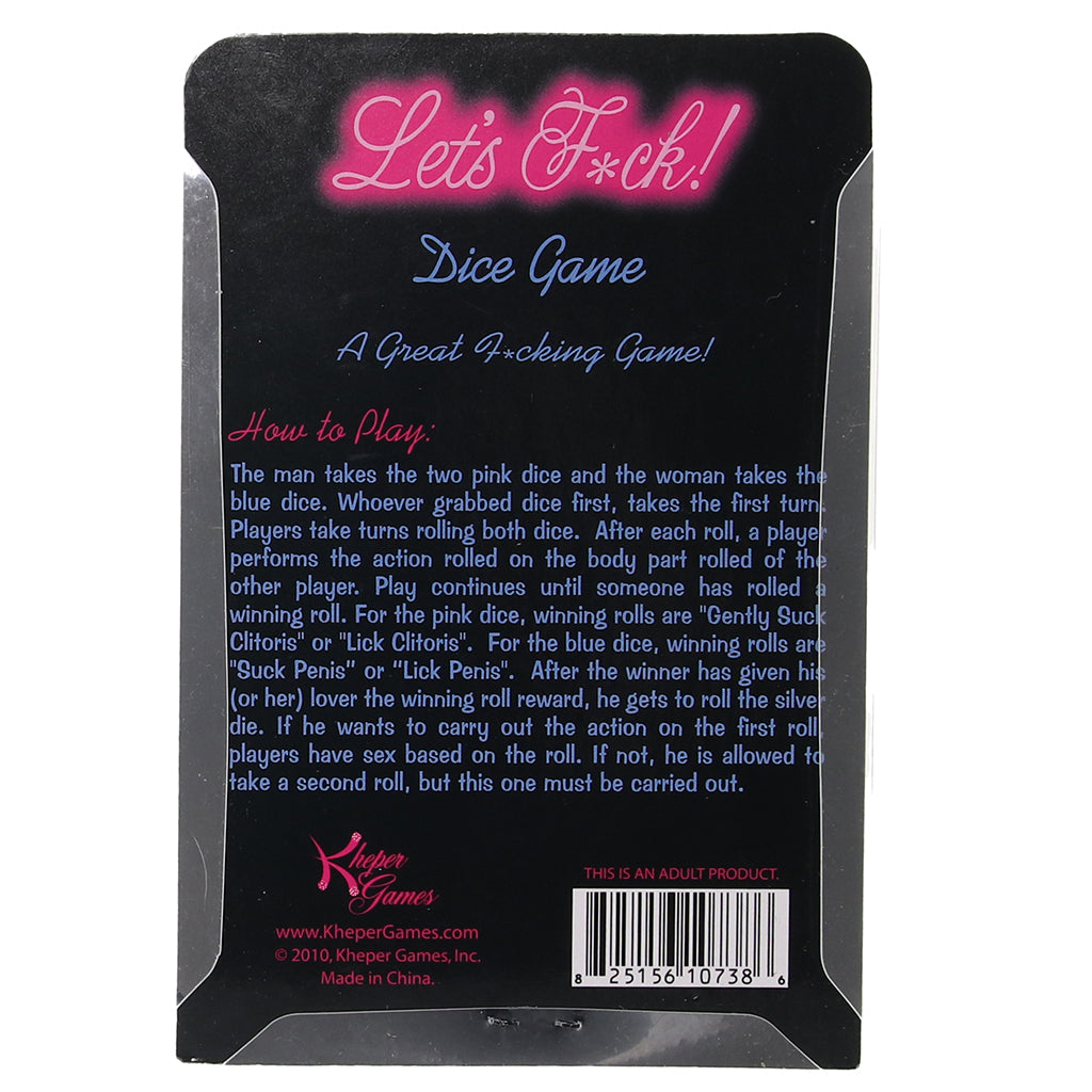 Let’s F*ck Dice is a cheeky little game of chance made to get everyone laughing, flirting, and very quickly not just playing a game anymore. Roll the dice, follow the prompts, and see where things go. Bedroom, living room, kitchen… dealer’s choice.