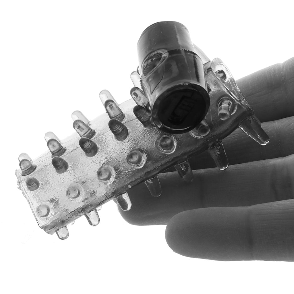 Slipping over your or your partner's shaft, the Sleeve provides tons of sexy constriction to help reign in a hard-on as the mini bullet vibe up top bumps and grinds against a playmate's clitoris, perineum and other outer sweet spots. Never fear, you'll both definitely feel the buzz!