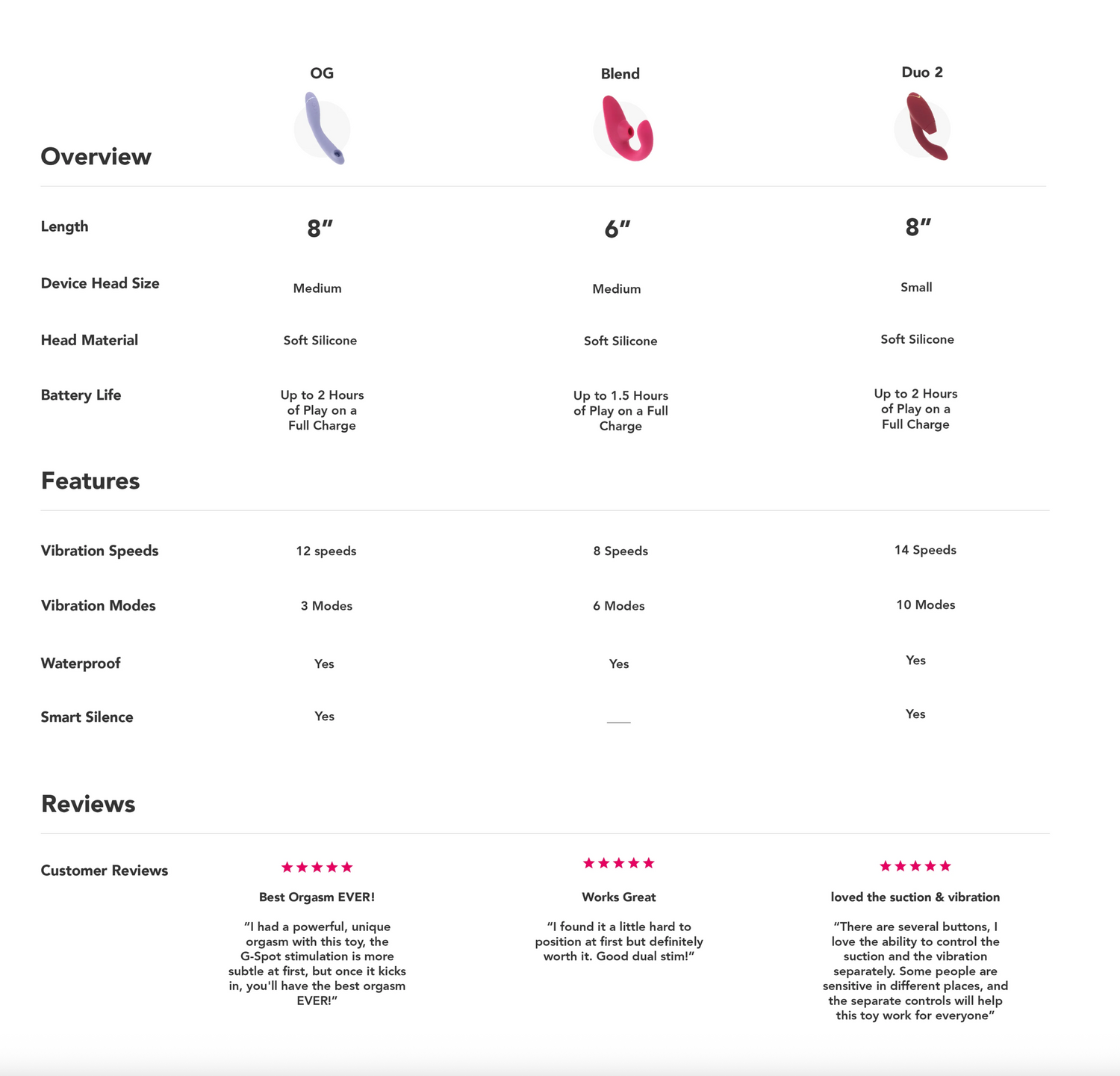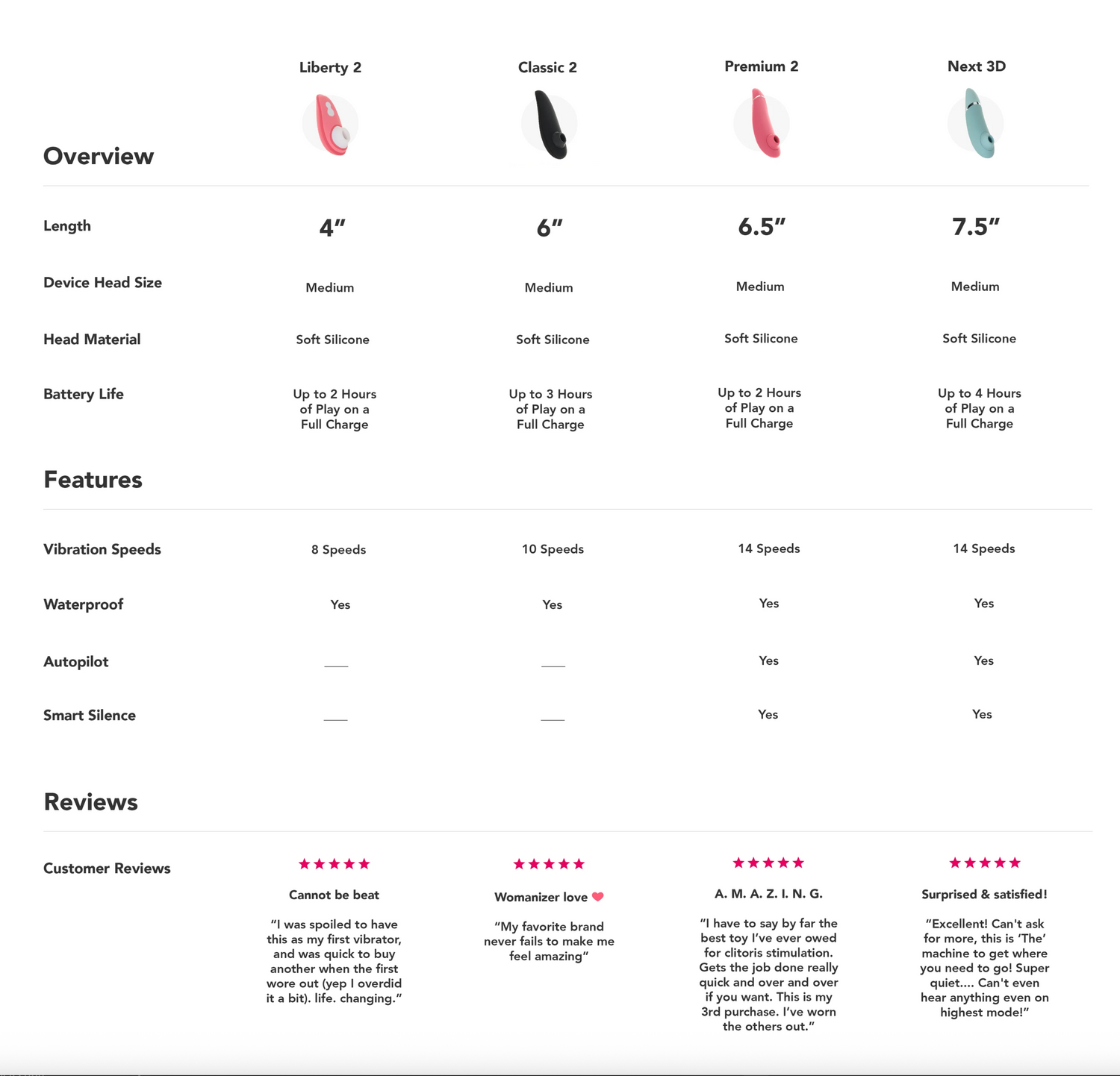 Womanizer clitoral suction stimulators come in many different models and styles, including the original Womanizer, that started it all, the compact and travel-ready Starlet 3 , the elegant and sensual Liberty 2, or the ultra-fancy Premium. And just when you think it couldn’t get any better, Womanizer has also introduced a two-in-one clitoral stimulator and g-spot stimulator so you can have double the pleasure, inside and out!
