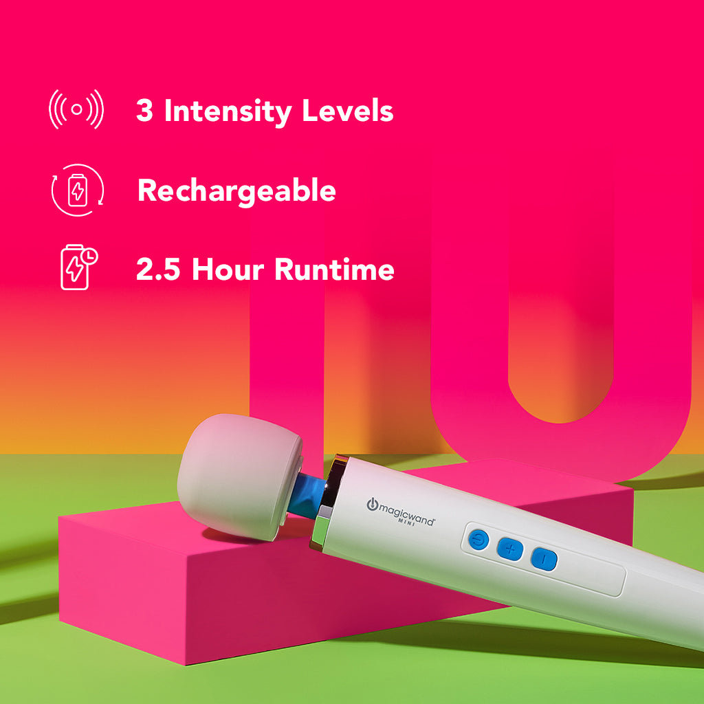 From clits to shoulders and waaayyyy beyond, the Mini’s flexible neck and stable handle make it easy to direct intense external stimulation. Pair it with wand-compatible attachments (not included) for internal play or penis stimulation.