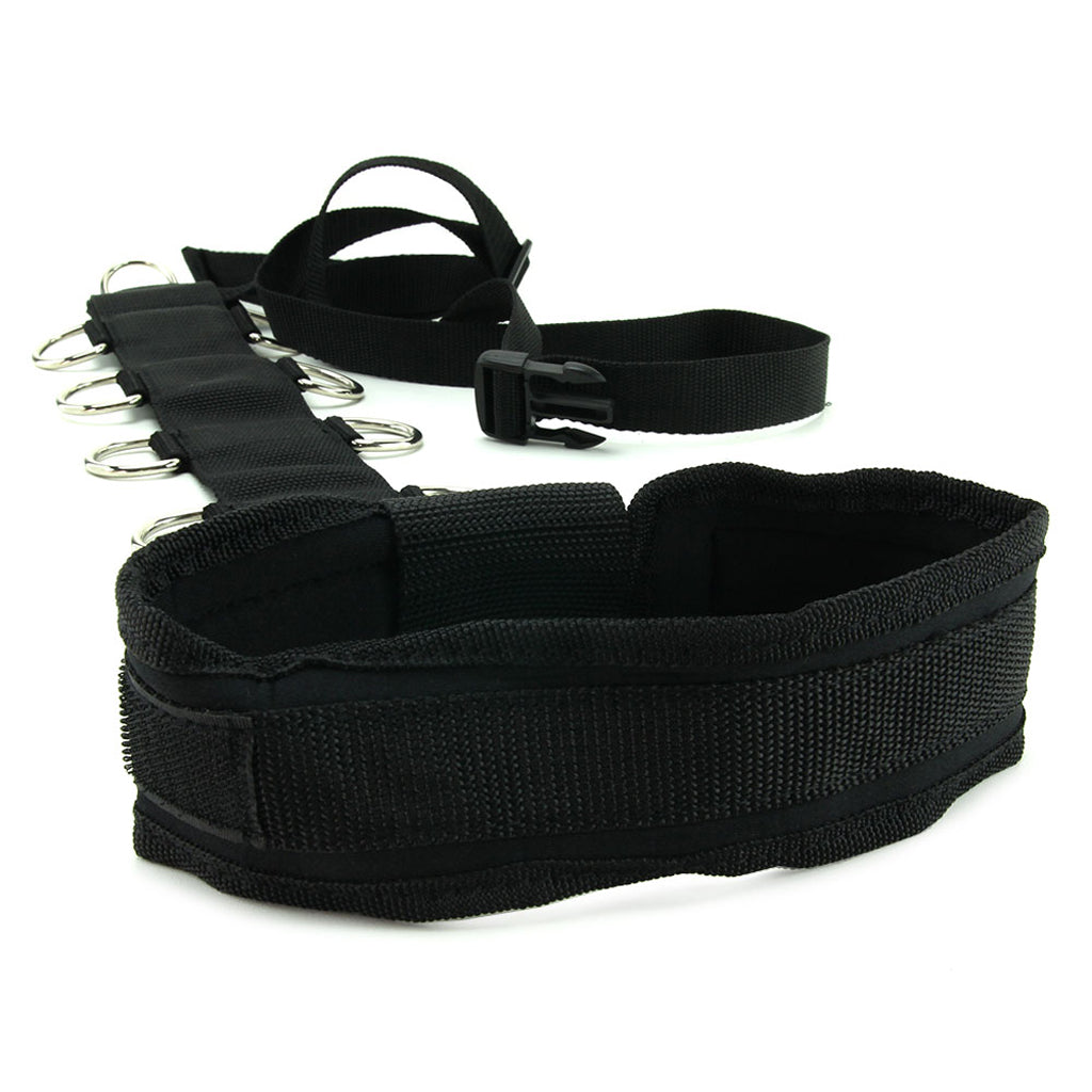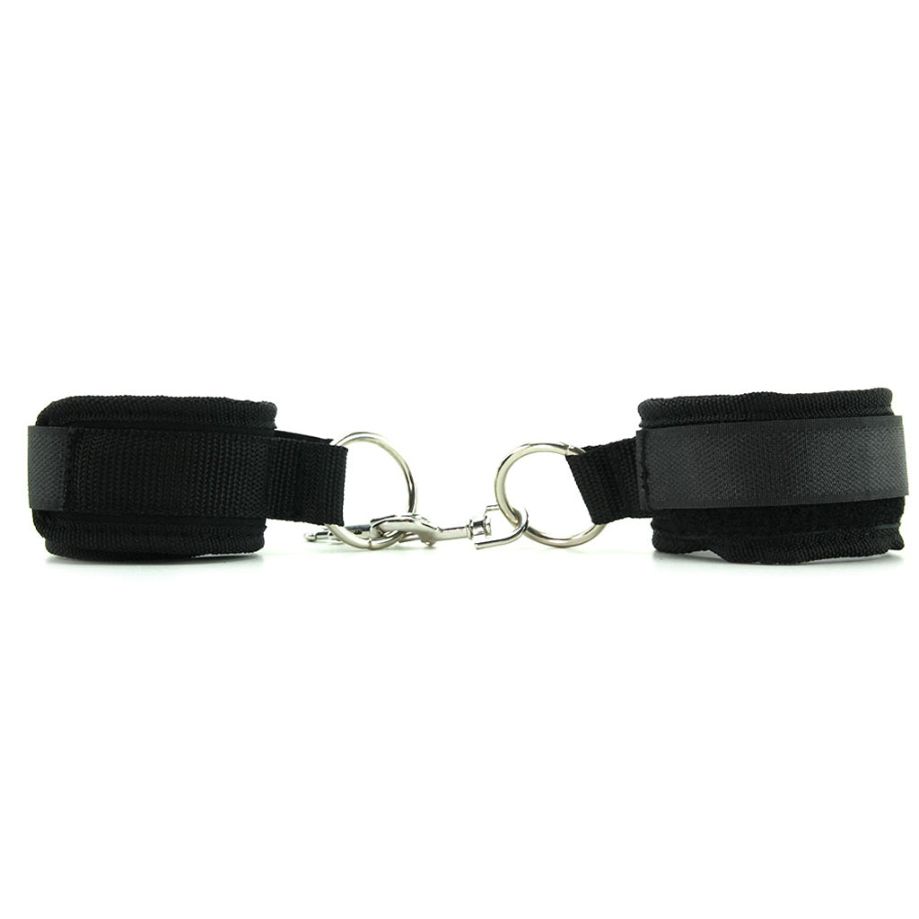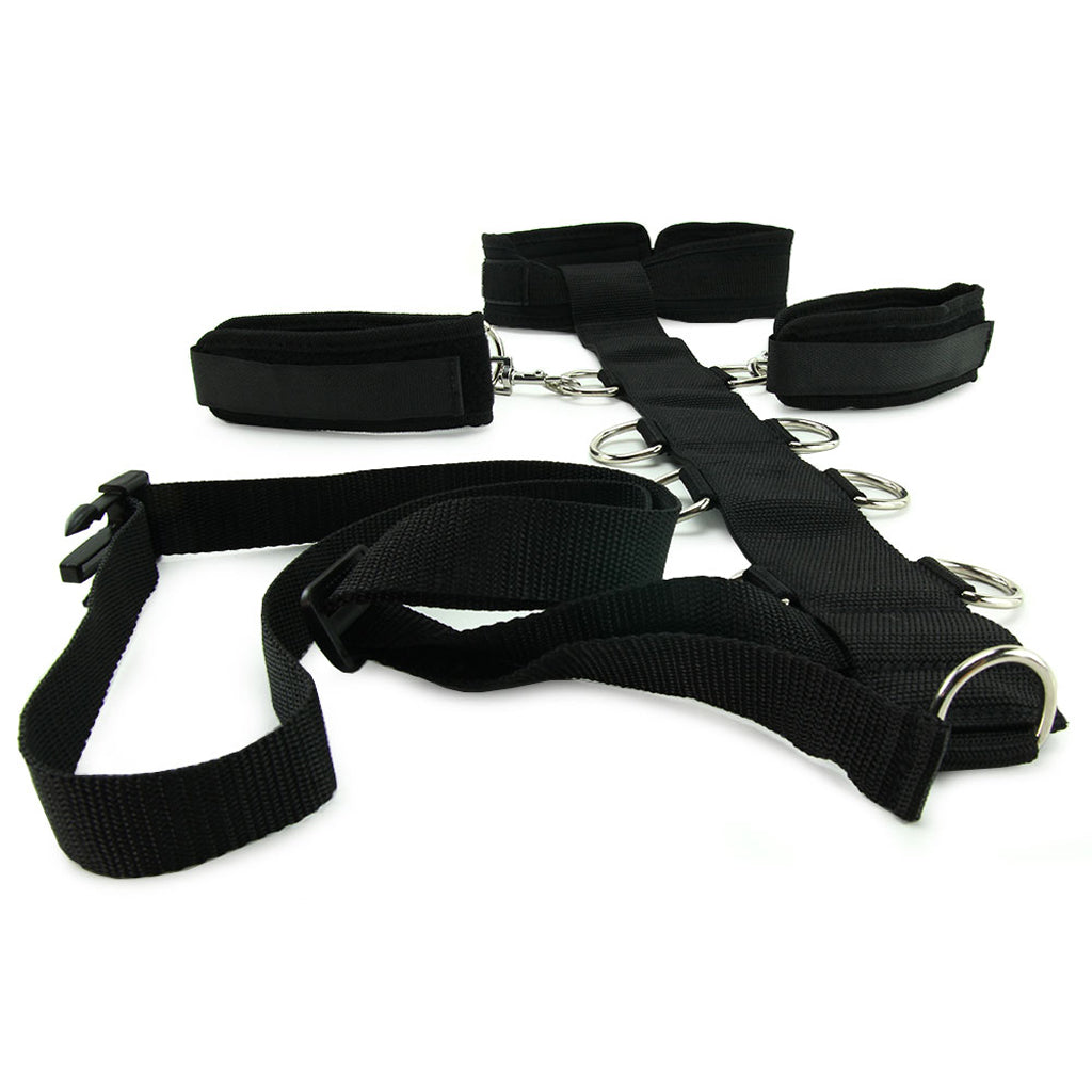 Able to be worn on the front of the body or behind, the Set includes a soft set of simple velcro cuffs to circle and secure the wrists through any of the four O ring fasteners placed along either side. As the body strap itself is secured to a wide, plushy collar along with an adjustable nylon waistband, secure compliance is practically guaranteed. Add in any compatible cuffs, leashes or other bondage gear desired to accentuate and enhance the experience and position. Fully adjustable styling fits most.