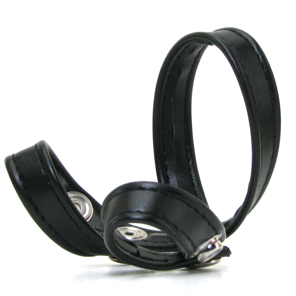 Made of a supple faux leather PVC, the larger strap wraps around the base of the penis, trapping blood where its needed to keep an impressive erection at its best. The two smaller straps underneath underneath separate the testicles, holding them apart and stretching subtly for a constricting feel that can help keep sensation under control, and can also greatly enhance orgasm when the moment finally comes (so to speak). Several possible snap positions make sizing easy and quick. Fits most.PinkCherry Rewards