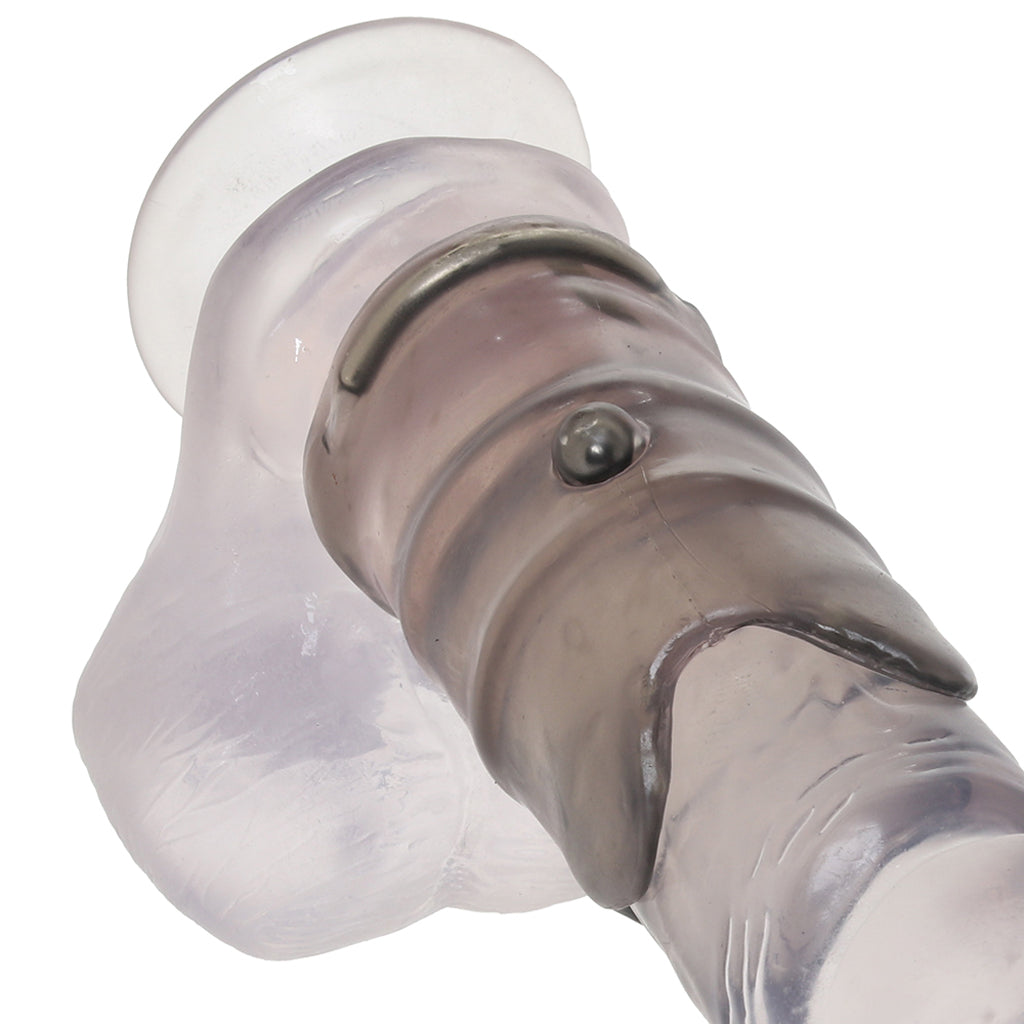 Slipping over your/your partner's shaft or strap-on and looping over your/their balls or a toy's base, the Enhancer's curvy steel base rings hold tight to help reign in a hard-on (if one's involved) and support and stabilize penetration. Meanwhile, a slick half-sleeve up top adds plenty of extra thickness and bumpy beaded sensation.