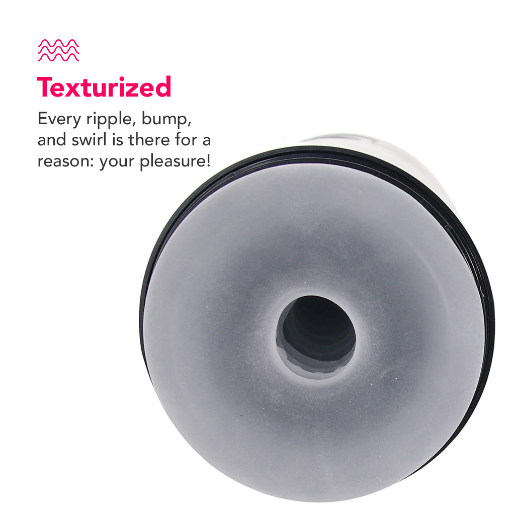 Let's start at the beginning - or the entrance if you'd rather. Pop the cap on the slick, easy-grip black case to reveal a snug, non-detailed opening. When you're ready to dive deep, it'll envelop you or a partner's shaft in plushy, stretchy softness and tons of stimulating pleasure chambers.