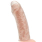 This stretchy sleeve slips comfortably over your or your partner's penis/strap-on, fully covering the tip and most of the shaft. Once in place, it can help stop a too-fast finish in its tracks (if a penis is in play) since your or their most sensitive spots will tuck away inside. Meanwhile, that extra layer adds more filling thickness to a chosen penetrator while the texture adds sensation.