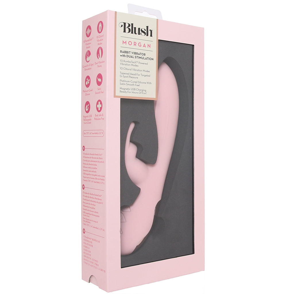 Need a (vibrating!) playmate for those sweet solo nights? Or maybe you're after a super-sexy bunny to share with someone. In both cases (and others, too!), Blush's bass-heavy Morgan is here for it. This thick, silky rabbit features a beloved dual-stimulating shape with some very dreamy additions. Here's to your pleasure!