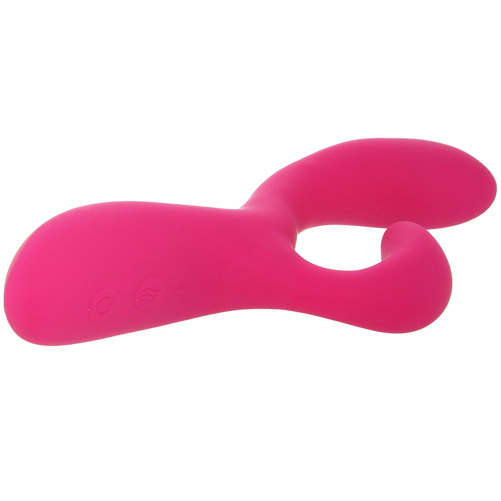 In silky, extra-flexible silicone, Quinn features a beloved inside/outside shape, two (very!) powerful motors, and ten synchronized RumboTech vibe modes. Reaching nice and deep, the curvy penetrator targets your or your partner's G-spot, A-spot, P-spot, etc., as a tongue-shaped stimulator ravishes your/their clitoris and outer sweet spots from below.