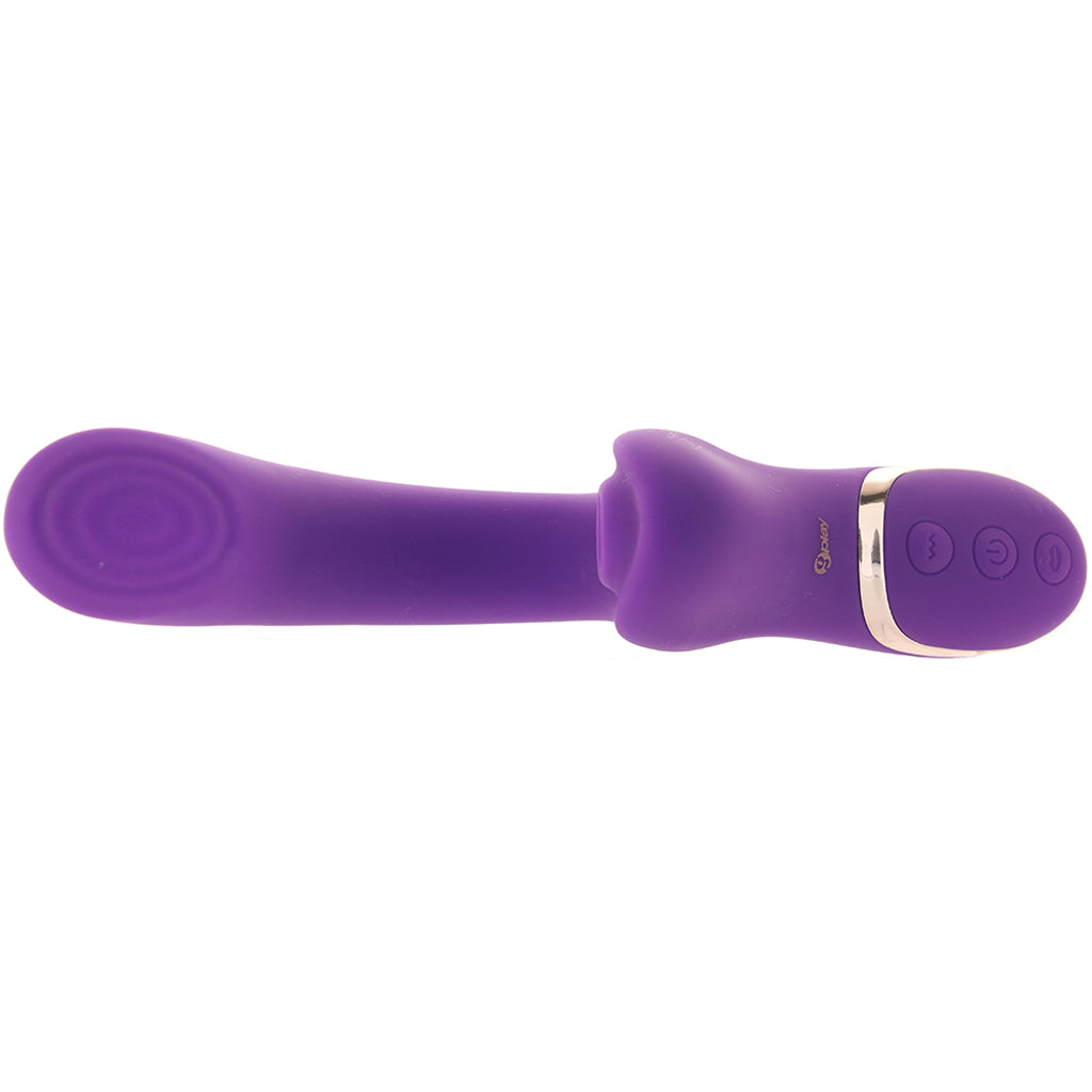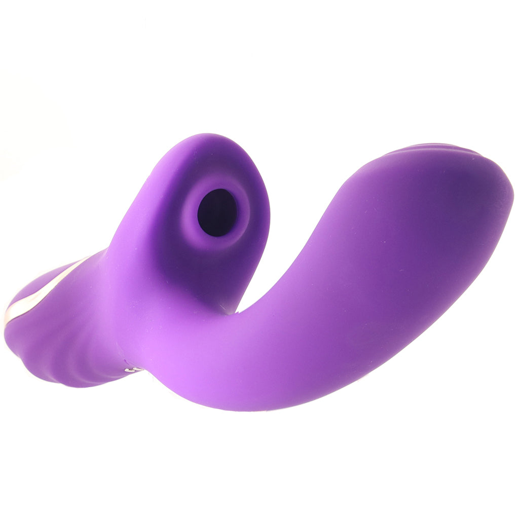 Wrapped up in a pretty purple silicone package, this curvy vibe gifts you with tons of pulsing, tireless G and inner sweet spot targeting possibilities (ten to be exact), plus another ten modes of gentle-to-greedy air pulse suction pressure in the clitoral/outer stimulator. Don't worry; you won't have to make any tough decisions - each function operates spectacularly solo, but you can and should combine them for headboard-rattling fun.
