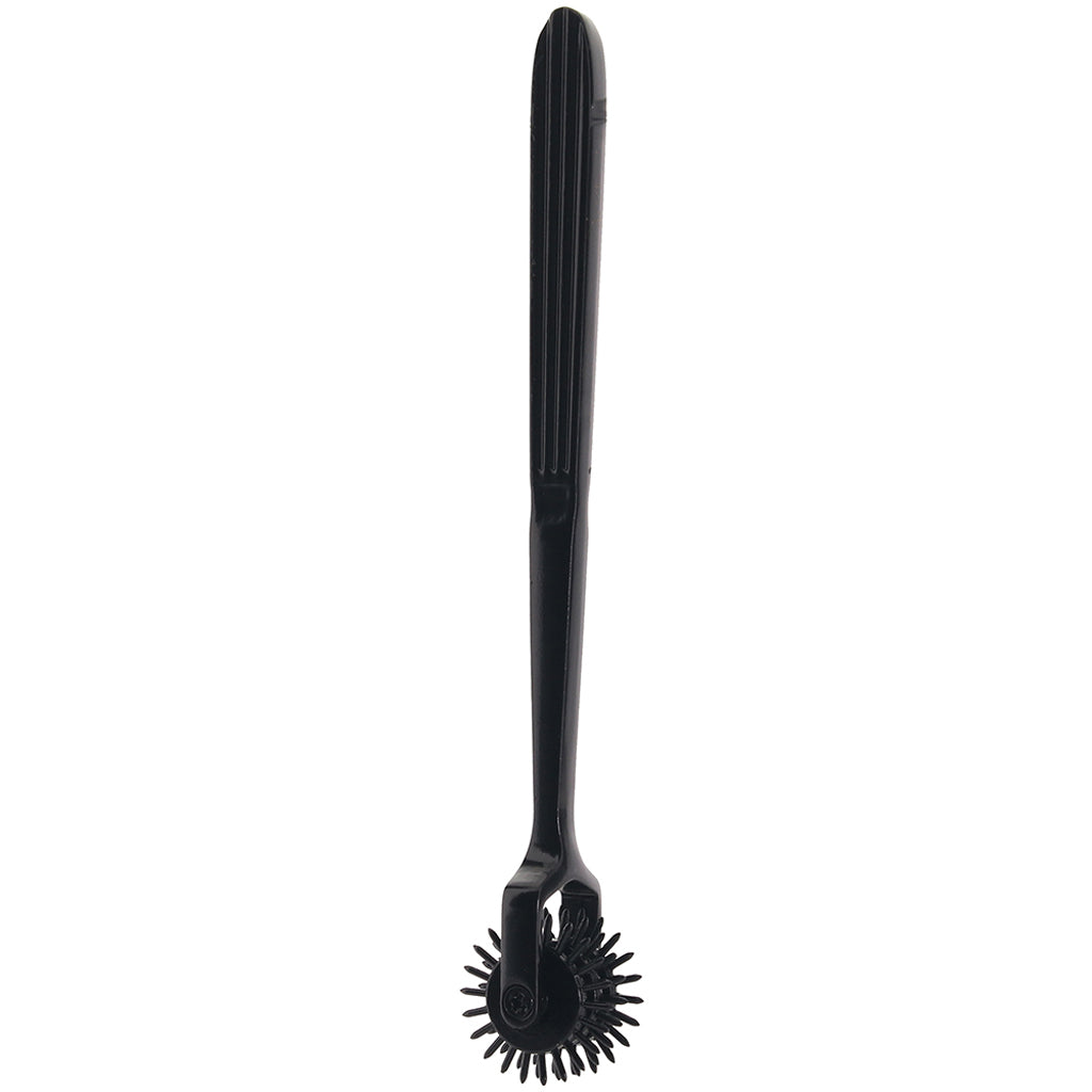 A bit less intense in terms of sharpness than some similar tools, the Trio features three rolling circles of sharp spikes. Roll the wheel lightly over skin to feel (or have them feel) the effect of dozens of tingly teeth - press harder to really make a point!