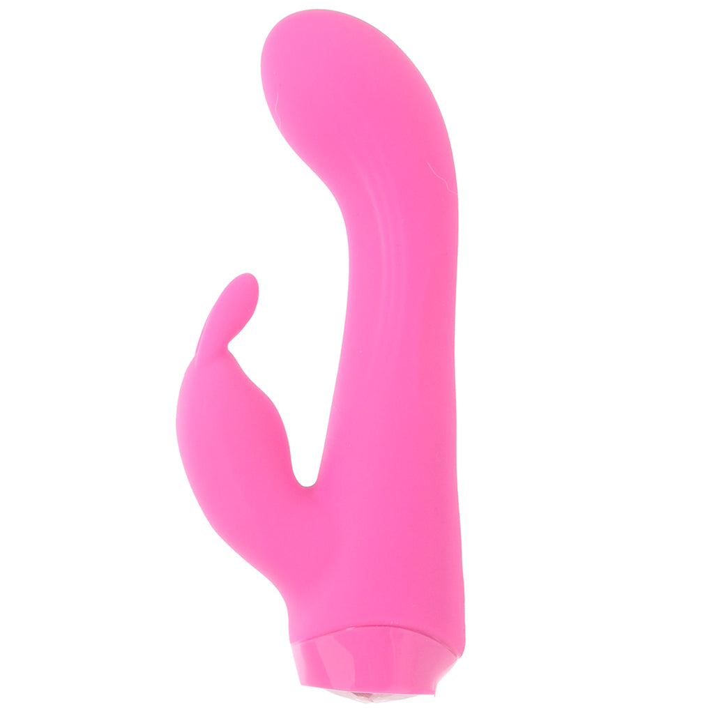 Once it's in position, the smooth, swollen probe works magic inside as a wee bunny tickler reaches up from below to ravish your clit and outer hot spots. Remember, you can flex it to fit just right!