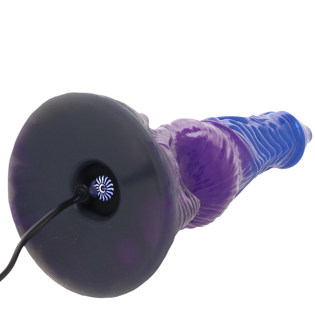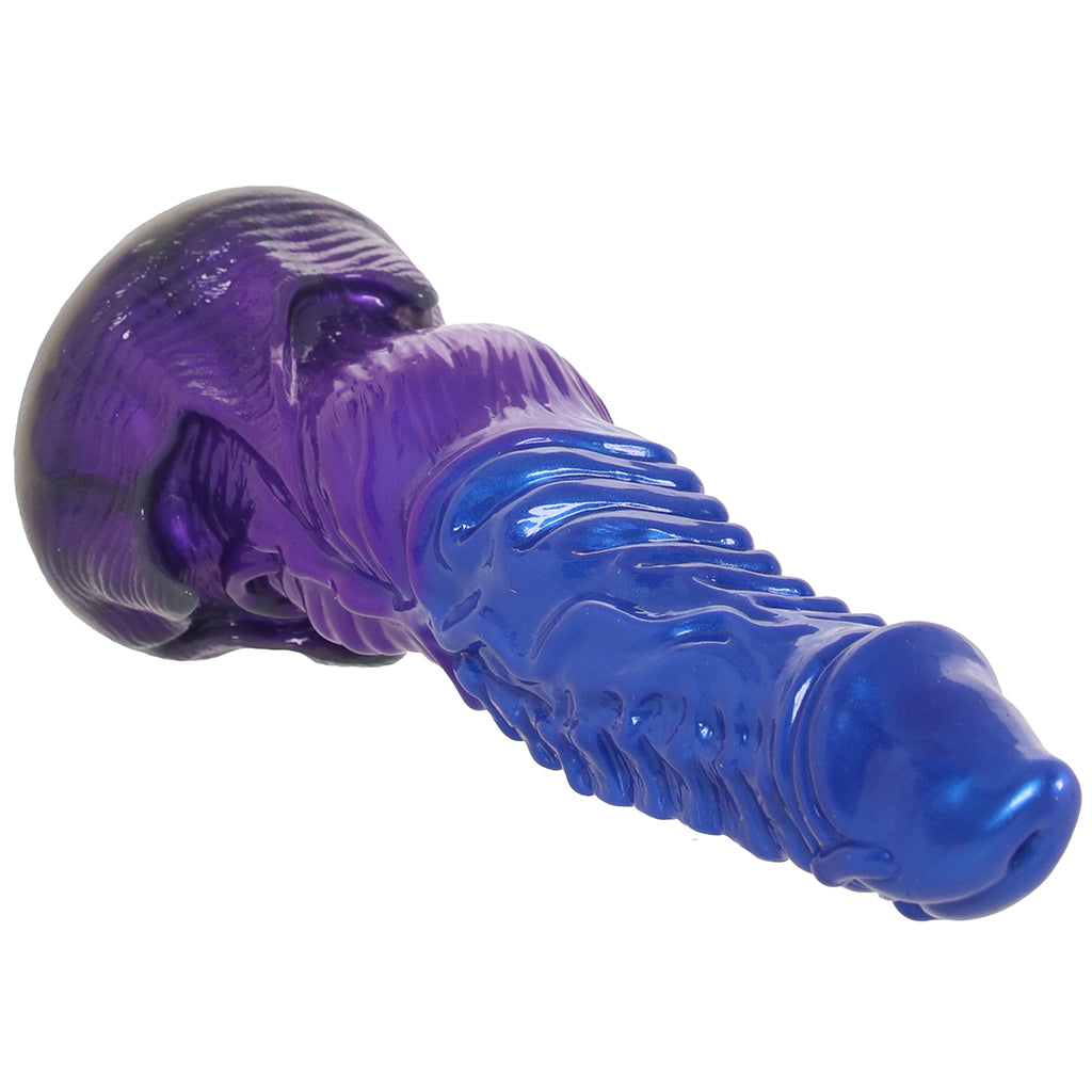 This thrusting and vibrating dildo is a full-throttle fantasy ride, decked out in electric blue and purple scales with a girthy mushroom tip, piercings, and a taper-to-thick shape that builds intensity the deeper you go. The spiked base adds that perfect hit of demonic drama while the smooth, premium silicone keeps the whole experience wickedly comfortable.