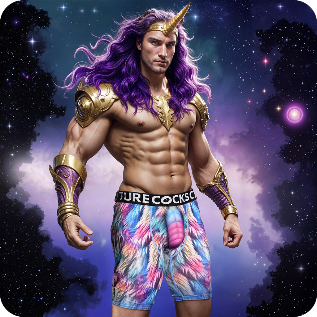 This is not subtle underwear, and that’s the point. Cosmic swirls everywhere, plus a unicorn horn right where you want the attention (the bulge!), because sometimes your basics should be a little unhinged.