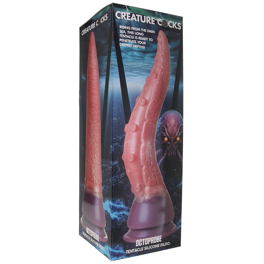 Shaped into a soft, curvy point, the Octoprobe Tentacle Dildo is nice and big once you/they get past the super slim tip. There's texture all the way down to a huge suction-cup base, from sexy little suckers on one side to tons of tiny tastebuds on the other.