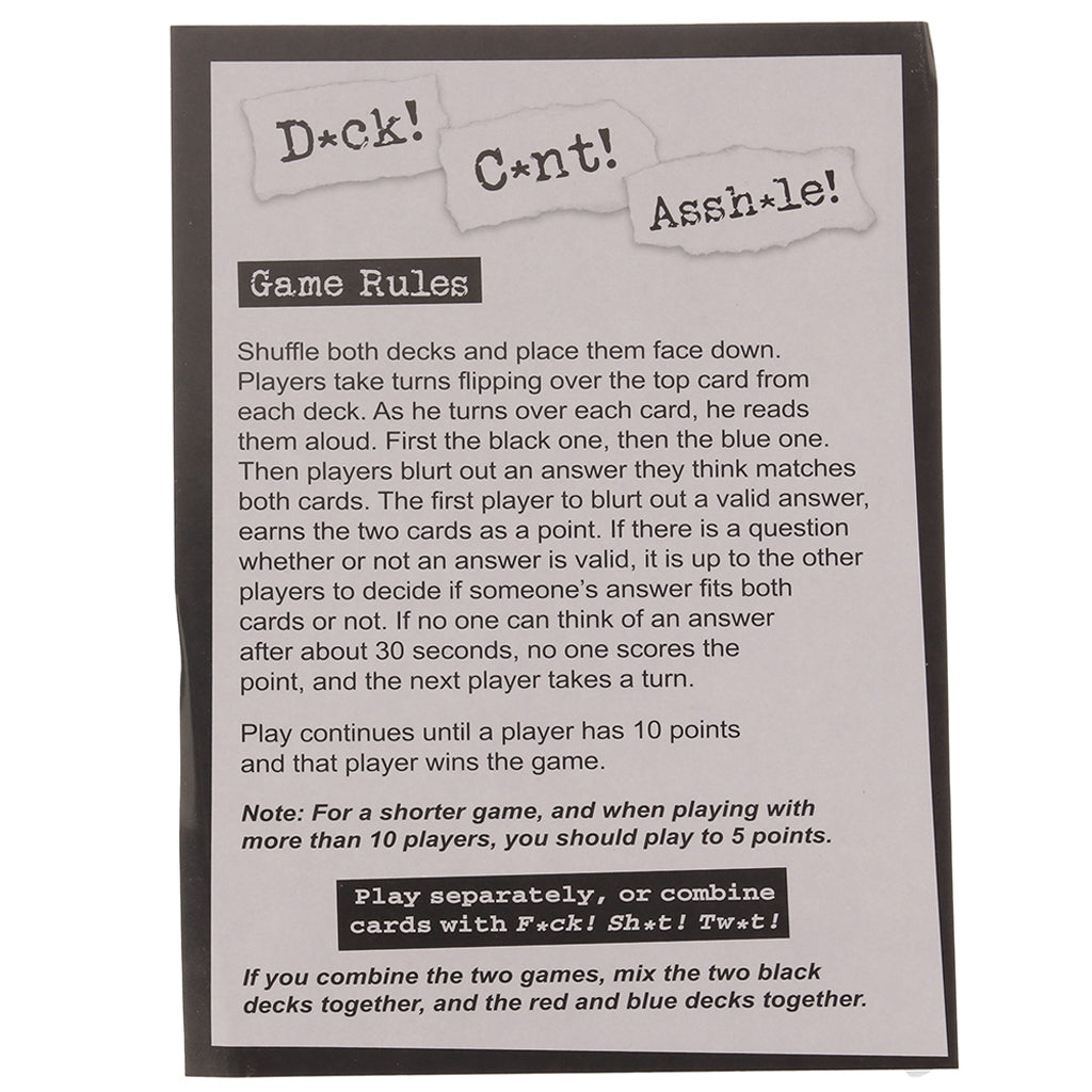 Ever wondered which of your friends has the dirtiest mouth - or mind? You're about to find out! D*ck! C*nt! Assh*le! pits players against each other in a hilarious game of who can be the most vulgar. Needless to say, it's (probably) not a game you'll pull out on family game night.