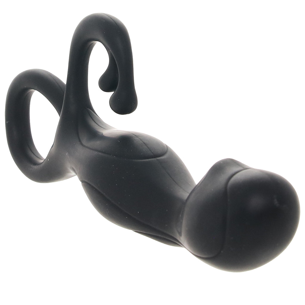 Meanwhile, the slimmer curved arm wraps underneath to nudge the perineum from the outside. It’s a simple design that lets you stimulate the prostate from both directions at once.