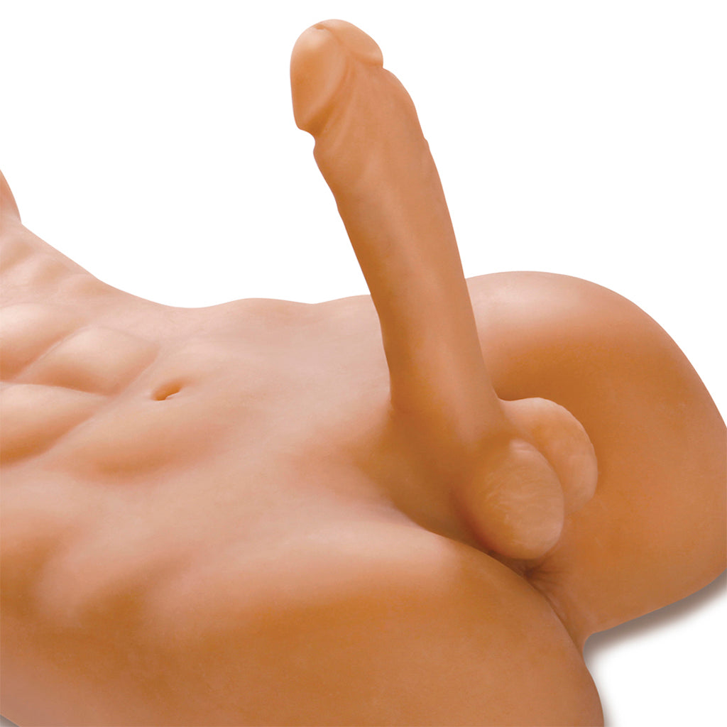 Aside from his true-to-life size, incredibly sturdy weight, sculpted torso and tight, ready ass, Pipedream's unquestionably fantasy-worthy Extreme collection of mind-blowingly realistic pieces, the F**k Me Silly Dude! Mega offers up his big, firm, positionable cock to men, women and couples seeking a perfect plaything up for absolutely anything. Boasting a chiseled chest, six pack abs- even perfectly placed hipbones, this incredible masturbator could fool the most skeptical senses, particularly in the dark- this Dude is certainly flexible and able to be propped up, bent over and otherwise manipulated into a position that suits, though a firmer texture underneath all the plushness stays true to the male form.