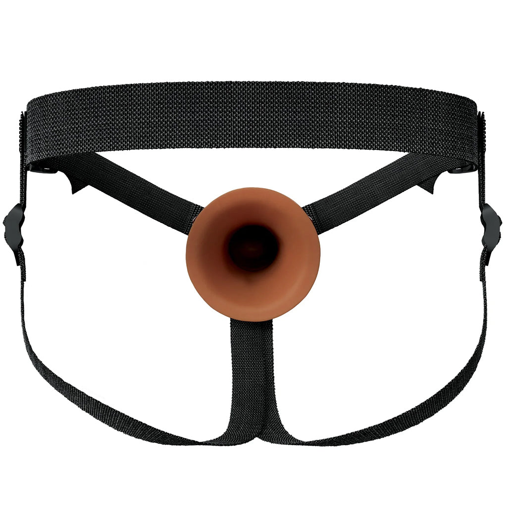 Strapping it on? A classic low-profile strap-on harness is included, and yes, you can use your own, too. The soft, adjustable straps are simple and the 1.75"/4.4cm and 2"/5.08cm metal O-rings snap on and off easily.