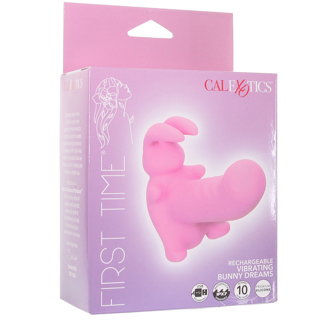 Pleasure problem: you're craving full-coverage clit/outer stimulation AND sweet-spot-targeting penetration. Luckily, CalExotics' First Time Rotating Bunny Dreams Vibe does both!