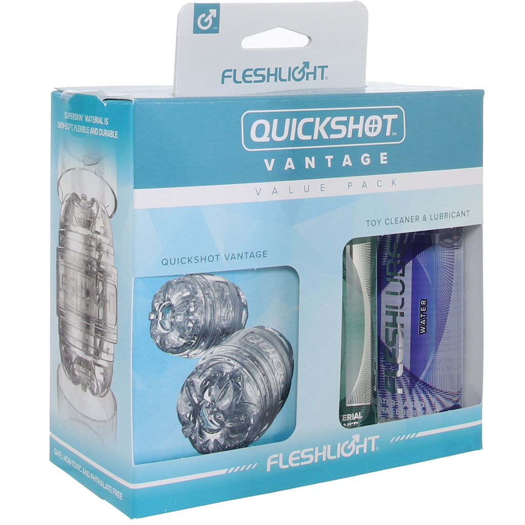 Speaking of convenience, the Vantage Value Pack contains all you'll need to get started, including full-sized 4oz bottles of Fleshlube and Fleshwash.