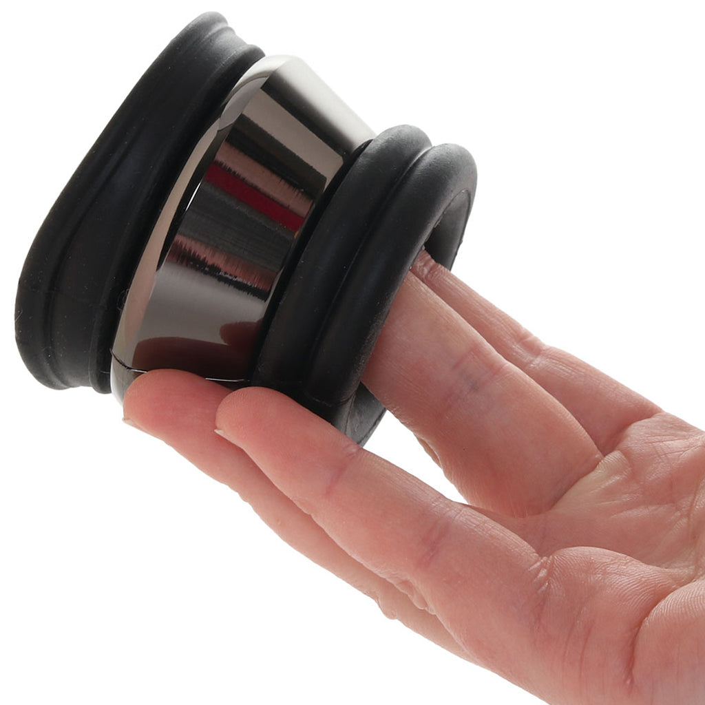 As it circles the base of your or your partner's scrotum, this thick silicone and iron tool tugs your testicles away from your body. Some penis-owing folks find that a good ball stretcher can help them last longer and make their eventual orgasm(s) more intense; some just love the feeling of having their balls tugged. Either way, right?