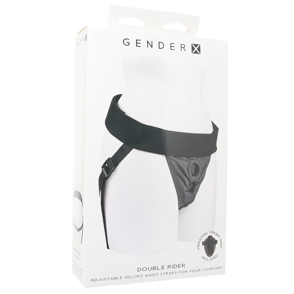Forget tradition, forget stereotypes, forget stigma. Come out and play! Gender X's Double Rider Harness is here to make your and your partner's double penetration strap-on dreams come true. Pun 100% intended.