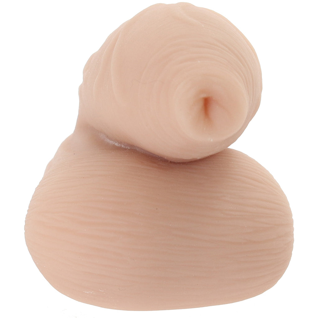 * The Uncircumcised Packer's base is 4"/10.2cm long. The shaft and balls are about 5.25"/13.3cm long and 3.25"/8.3cm high. The foreskin does not retract.