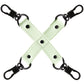 Fixed in a classic cross shape, four short straps connect to four rugged black swivel clasps. The clasps, in turn, connect to just about any cuff - as long as there's an O or D-ring involved, you're good to go. To make the most of the Hogtie's glow, let it bathe in some bright light for a while pre-play.