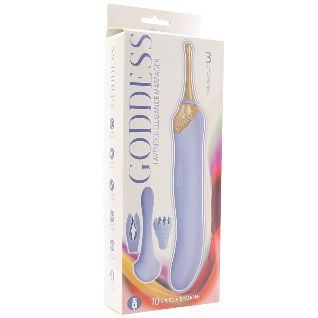 Love a little/a lot of outer tickle AND deep-down inner stimulation? How would you feel about a super-versatile vibe that'll work its stimulating magic inside and out? If any of that is up your alley, you should meet Nasstoys' Goddess Lavender Elegance Massager! Immediately.