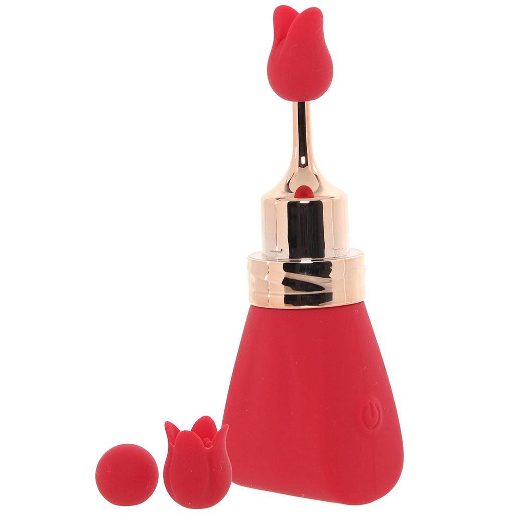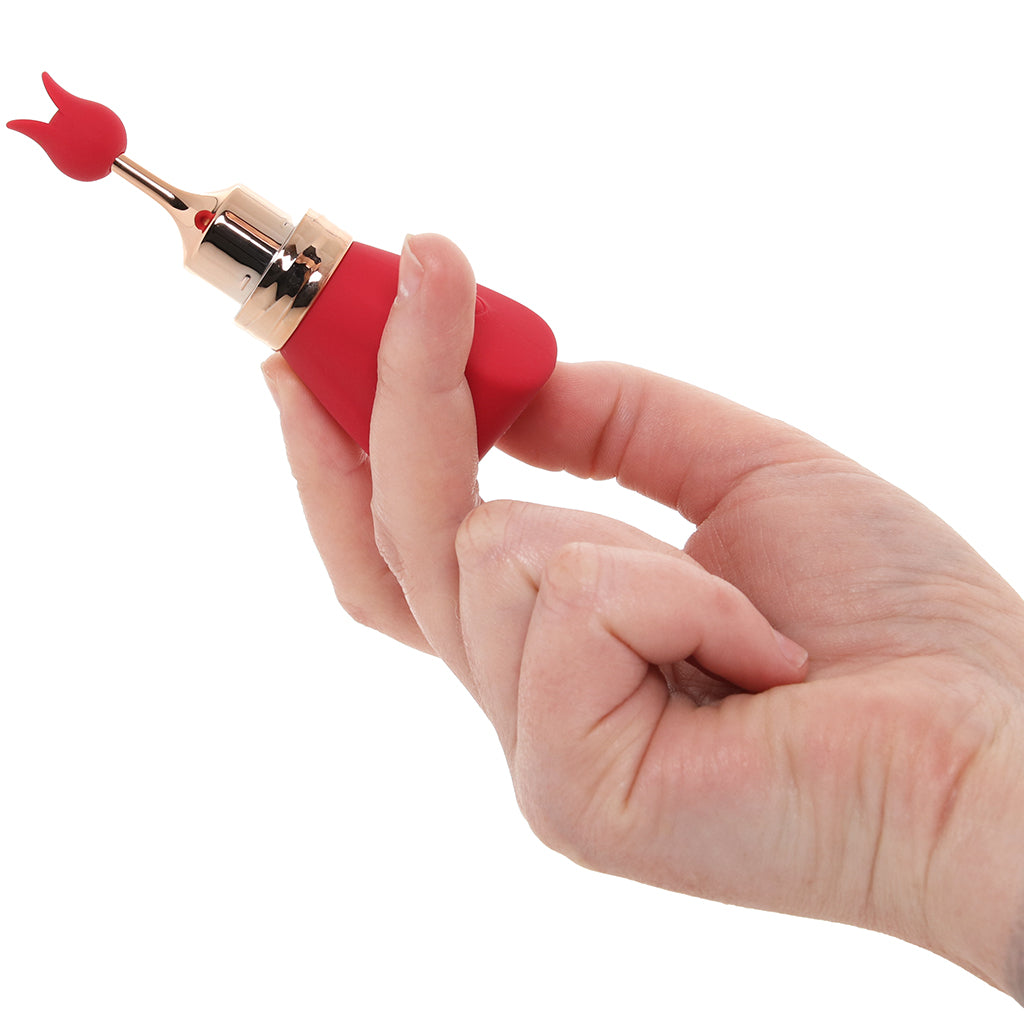 This compact, USB rechargeable powerhouse features 10 rumbly vibration modes and a tiny (.3") pinpoint tip for ultra-targeted stimulation anywhere you want it. Customize your experience with three body-safe silicone toppers: a fluttery flower tip, a split flicker tip, and a soft rounded dome. Whether you're craving teasing, tapping, or steady pressure, Blaze has your vibe covered.