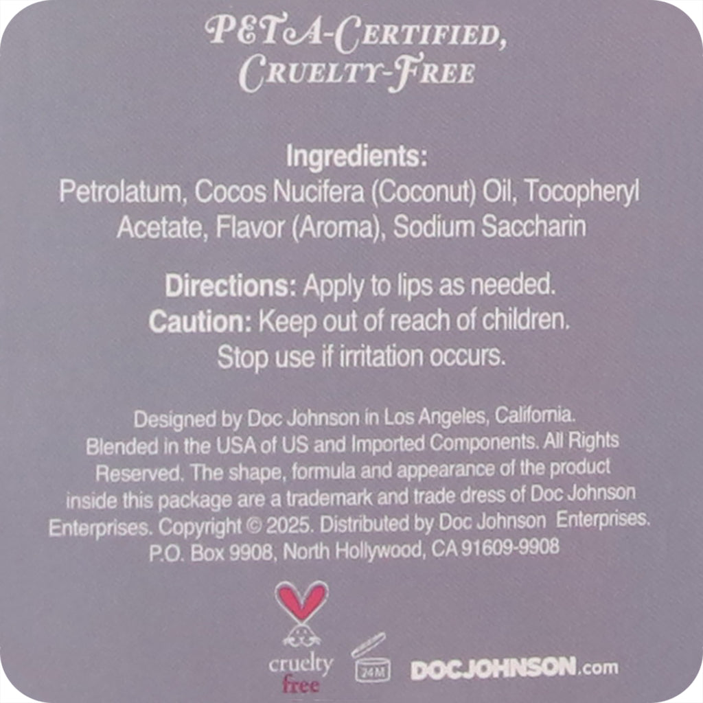 Bringing that tasty vibe while going down, this ultra-hydrating formula keeps your lips glossy, slippy and ready for anything. Use it as your daily balm, your date-night prep, or your secret weapon for extra-fun oral moments.