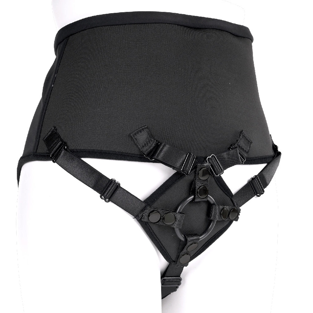 A functional harness is great. A functional harness that's also drop-dead gorgeous is even greater! On that note, please meet Sportsheets' High Waisted Corset Strap-On. Along with many penetrating possibilities, it features a stretchy, supportive, curve-complementing corset top.