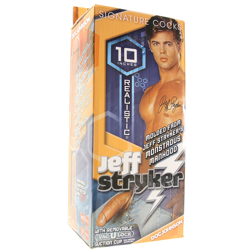 Molded direct from legendary adult film star Jeff Stryker, this ultra filling masterpiece perfectly recreates the gigantic size and dramatically curved shape of its namesake's famous cock. Fantastically lifelike on all fronts, the Stryker dildo features uniquely mobile balls, a plush, reliably satisfying texture and hand-detailed blue veins swirling through a thick shaft.