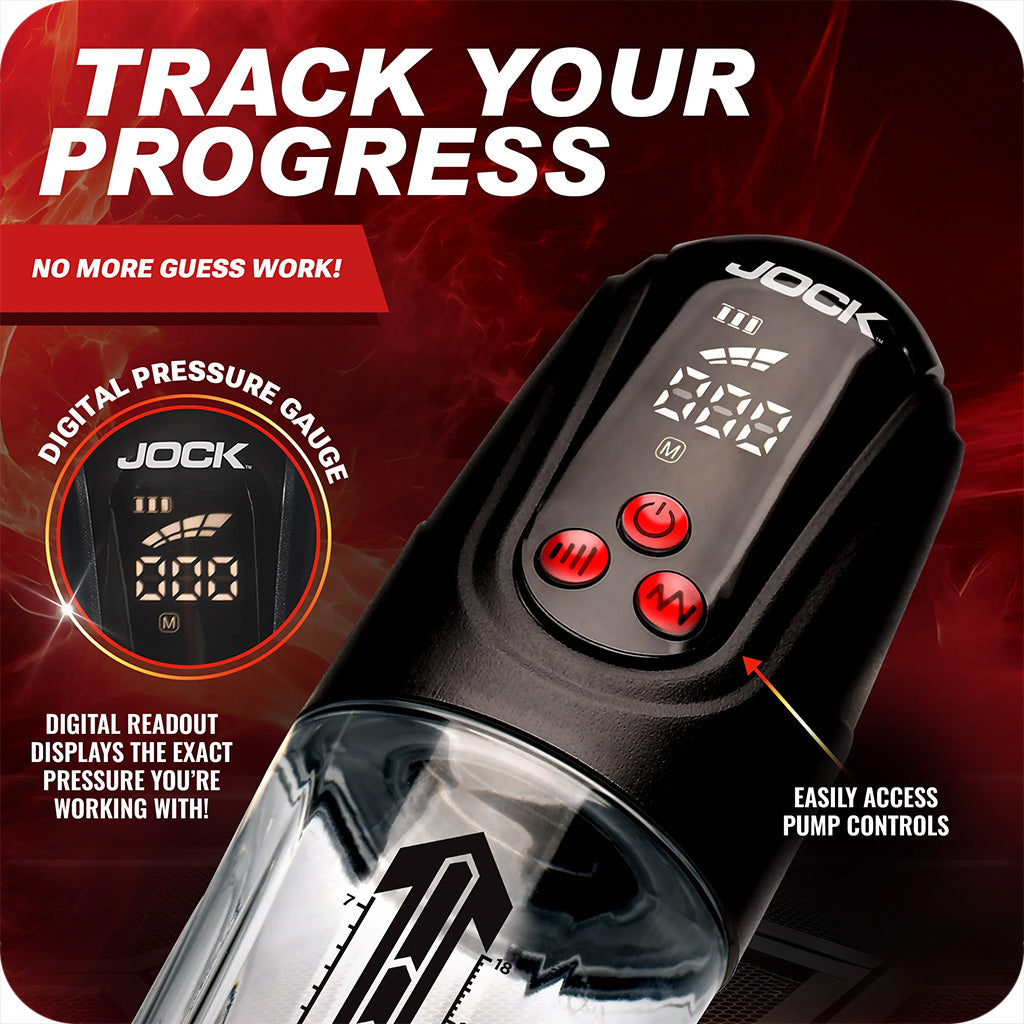 Welcome to shaft day. Every day! The Jock Power Up Digital Automatic Penis Pump gives you automatic suction and instant results you can track as they happen.