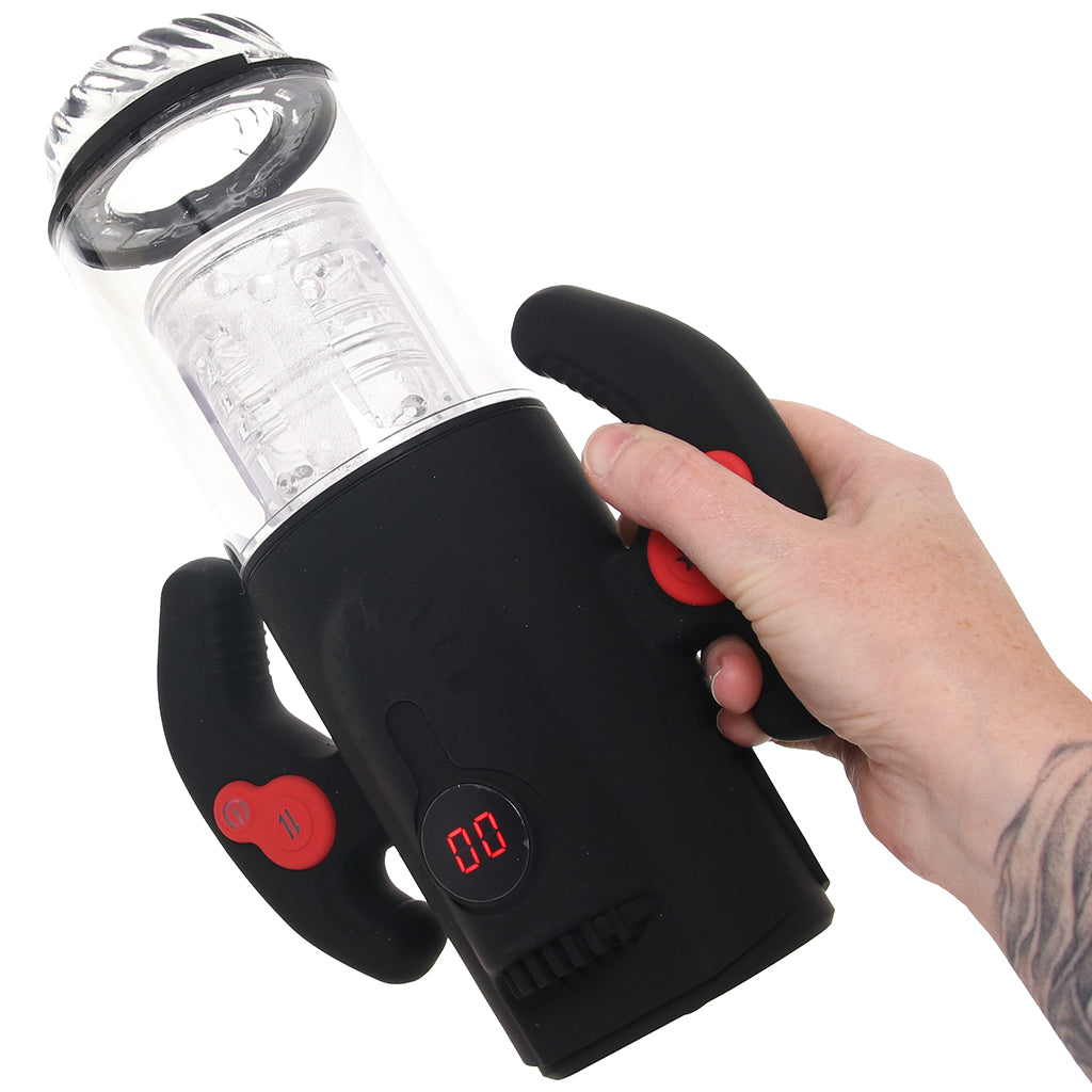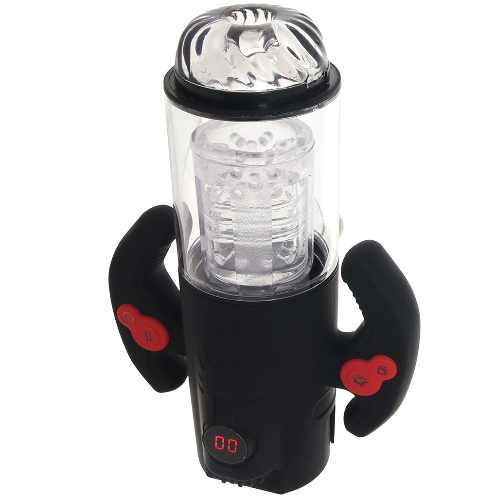 Ready, player one? The Turbo Max Spinning, Thrusting & Sucking Masturbator turns pleasure into a full-body boss battle. Grab the game handles, choose your mode, and let the sleeve do the rest while you watch the action unfold in the clear cylinder.