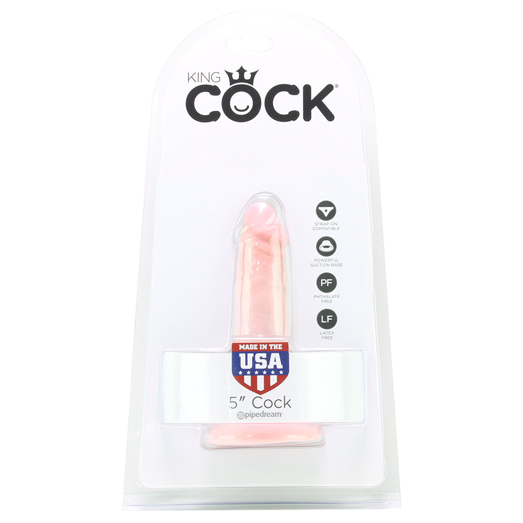 Hand-detailed to showcase a smoothly tapered tip and shaft criss-crossed with subtly swollen veins, the slim 5" King boasts a nice wide base that acts as a worry-free barrier against the deepest penetration while providing stability in a harness or when secured against a flat surface. A sturdy suction cup beneath holds steady, positioning the King vertically on floor or counter top, or horizontally on wall or window.