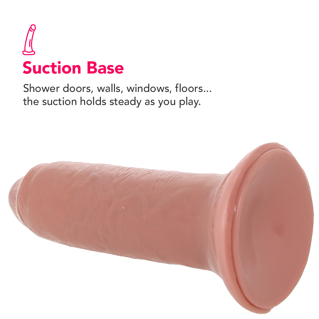 Nice and filling, the shaft is thick and textured with subtle raised veins. Working great in a harness as well as in hand, the Uncut features a circular base compatible with many strap-on and pegging systems. The base also happens to be a suction cup, so the Uncut can be secured on the wall, window or shower door for hands-free fun.