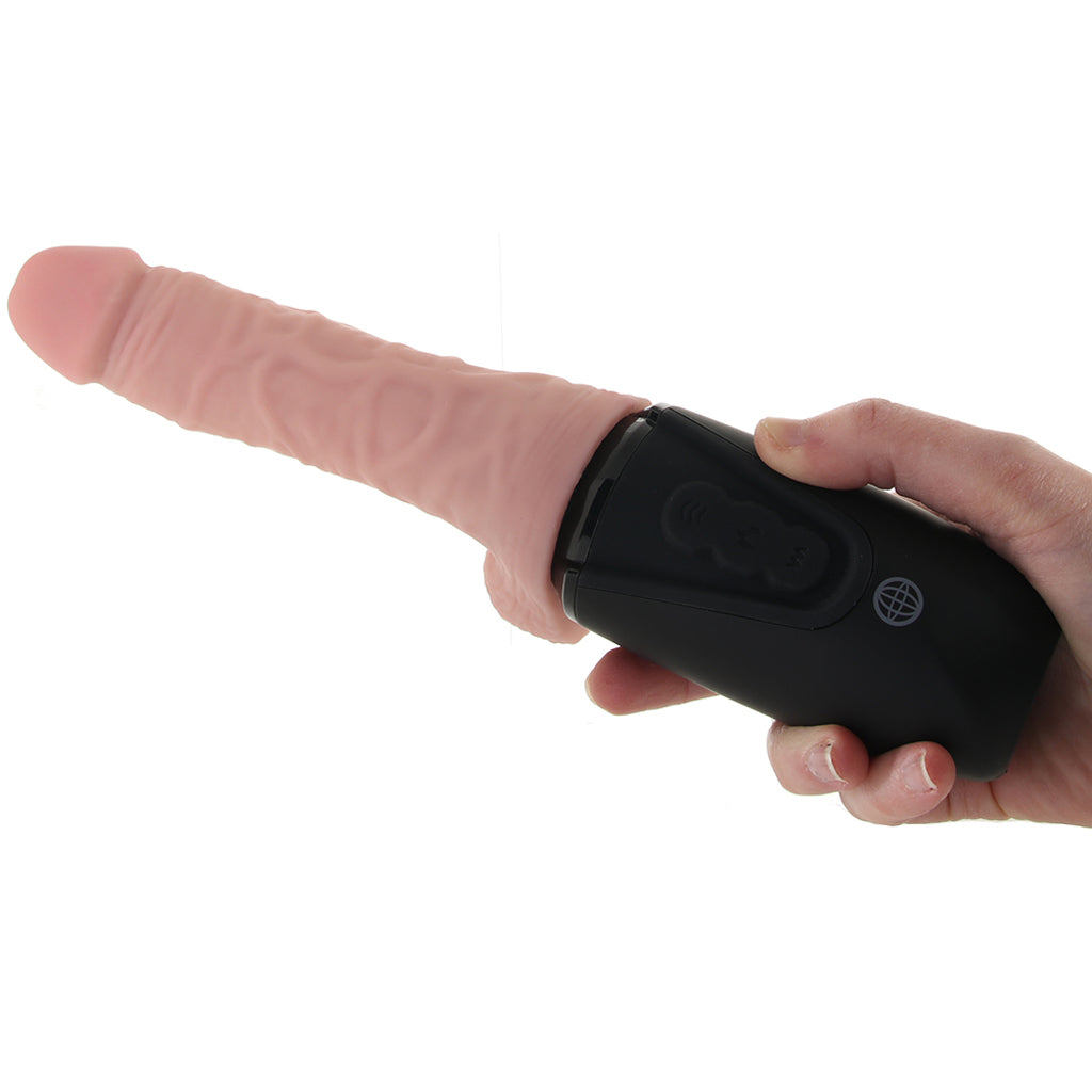 Meanwhile, there are those seven vibration modes to play with, too! You can combine vibration with thrusting, or enjoy either function solo, with or without the final piece of the Triple Threat's trifecta - a heating mode that warms the soft material to body temperature in mere minutes. Everything is controlled using simple buttons on a sleek, easy-grip handle.