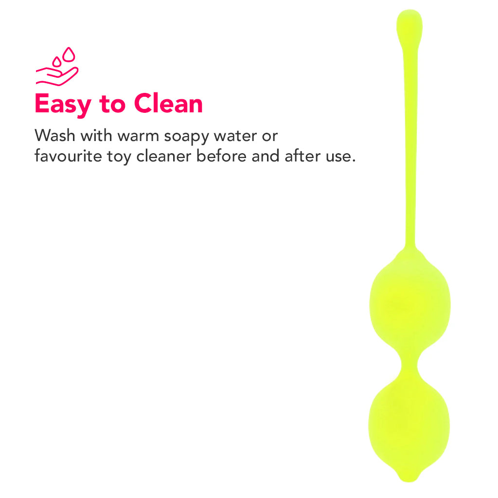 In high quality body safe silicone, the Lemon Kegel Training Set cleans easily using warm soapy water, but you you can also use a good toy care fluid/foam, if you like. This CalExotics pleasure offering is compatible with any favorite water based lubricant, but please keep it away from silicone lubes and other silicone toys