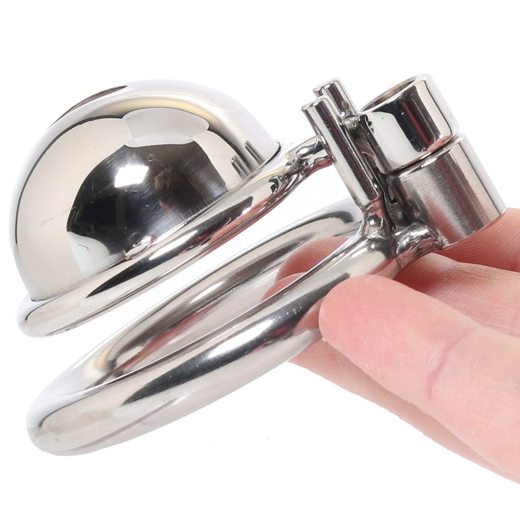 This firm, no-nonsense, humiliation-ready mini Cage fully restrains their shaft and tip, leaving only a (tiny) pee-friendly opening un-confined. You'll lock the dome-shaped top up tight to a ring looped behind their balls before letting them say bye-bye (if you feel generous) to the cock you now own.