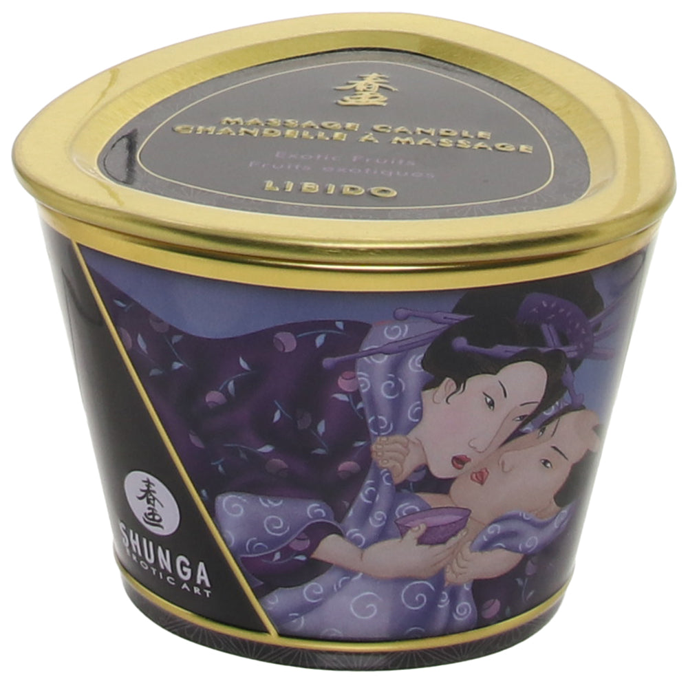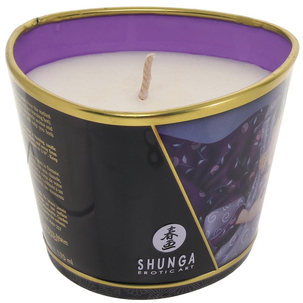Infusing surroundings almost immediately with a signature scent, Shunga's predominately natural concoction of coconut, sweet almond, safflower and soy oils melts quickly to liquid form once lit. Pouring smoothly from a curvy container, the oil can be drizzled sexily over the lucky massage recipient, eliminating unwanted friction, softening and moisturizing body surfaces and entrancing mates with its intoxicating fragrance.