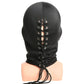 The extra soft Cocksucker Hood features cutouts for your/their mouth and nose, a padded blackout mask sewn right in, plus some classic corset lacing up the back.