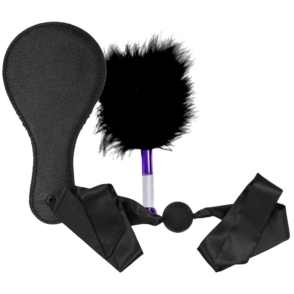 Inside, you and your partner(s) will find eleven spectacular BDSM staples, including some silky satin cuffs, a ten-speed silicone vibe, some pretty, pinch-y nipple clamps, and much more. You can use each piece solo or combined with the others - we obviously recommend trying them all at once!